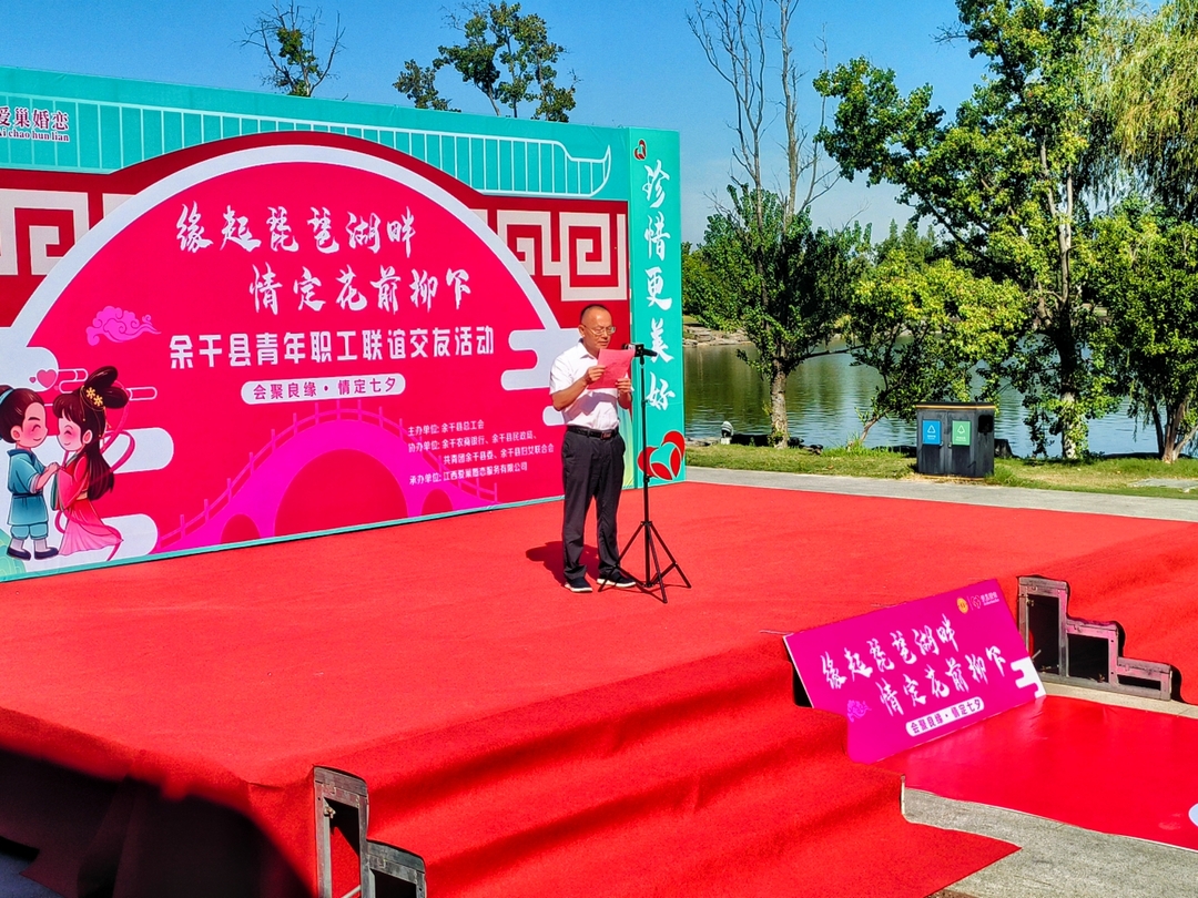 8月29日是七夕佳节,上午,“爱我上饶 当好主人翁”“会聚良缘·情定七夕”余干县青年职工联谊交友活动在琵琶湖爱巢婚恋有限公司温馨开启。此次活动由余干县总工会主办,县民政局、共青团余干县委、县妇女联合会及农商银行协办,江西爱巢婚恋服务有限公司承办,旨在为单身青年职工搭建情感交流桥梁,切实解决新业态、机关、企事业单位(行业)单身青年“婚恋难”问题。县人大常委会副主任、县总工会主席段仁祖出席活动并致辞。