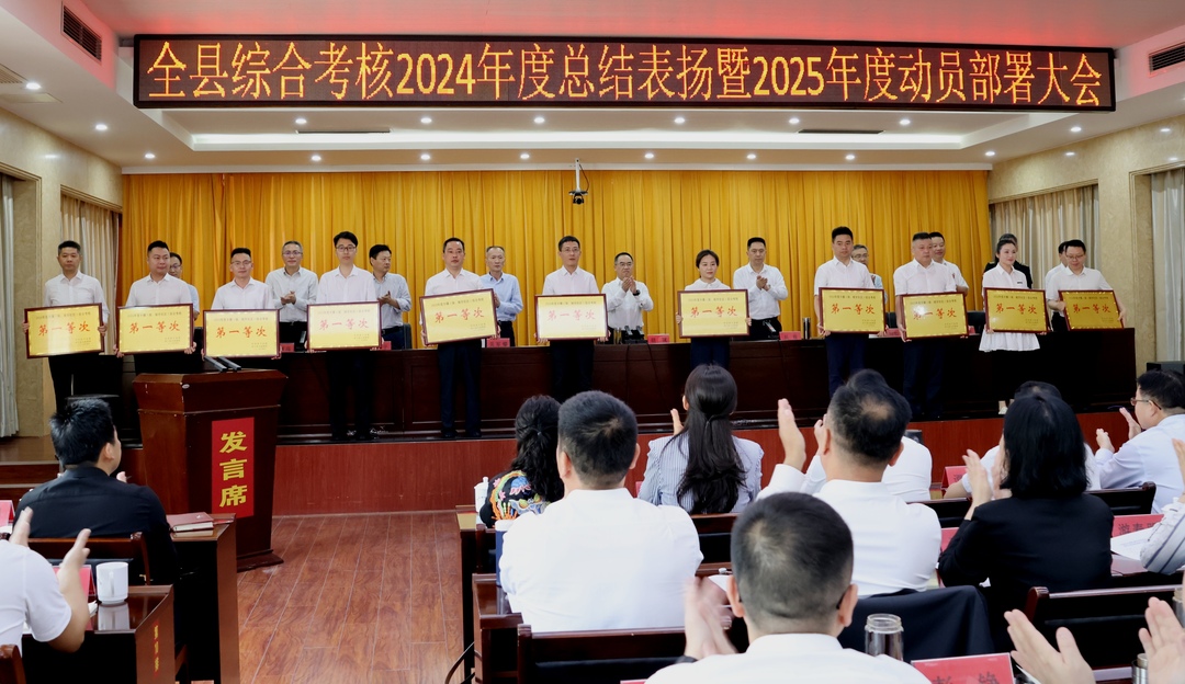 县委副书记吴松主持,县人大常委会主任吴军攀,县政协主席段相如等县四套班子在家领导及法检“两长”出席。县委常委、组织部部长刘渊海通报了我县2024年度综合考核结果。会上,县领导为获评先进单位代表颁奖。