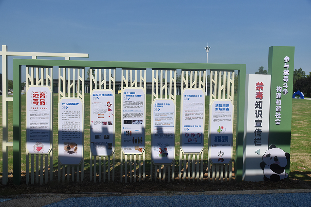 据悉,余干县禁毒主题公园围绕禁毒历史、毒品种类、吸毒危害、禁毒普法等方面,以图文、造型、景观等形式巧妙地将禁毒知识自然融入公园整体环境中。